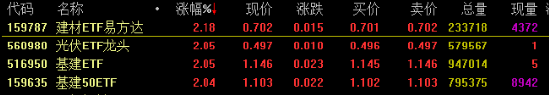 8月8日,市场全天窄幅震荡西宁股票配资,三大指数小幅下跌。截至收盘,沪指跌0.12%,深成指跌0.26%,创业板指跌0.38%。建材ETF易方达、光伏ETF龙头、基建ETF、基建50ETF扔逆势涨超2%。
